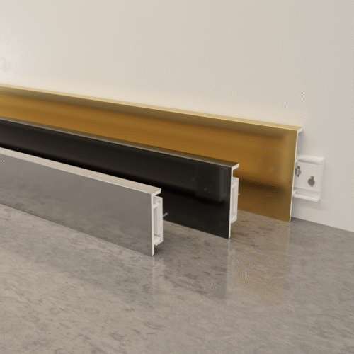 - Modern metal skirting boards function as wire concealing features which help keep your space organized while hiding wires and pipes.
